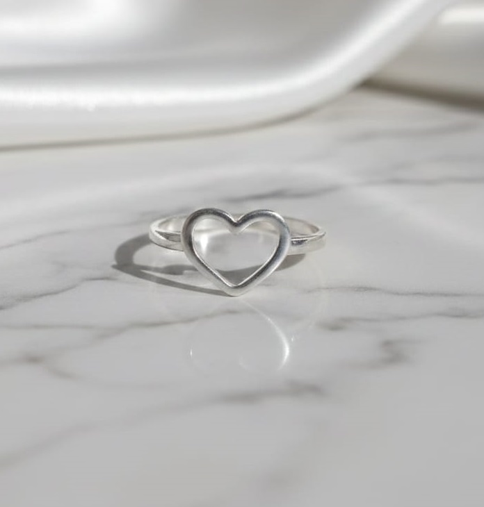 ANEL PRATA CHAPA CORAÇAO VAZADO