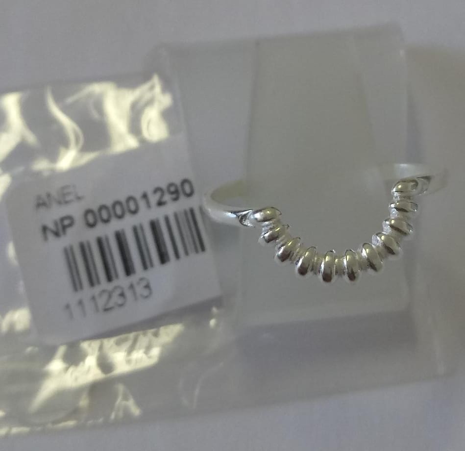 ANEL PRATA CHAPA FINO MEIO CIRCULO COM DETALHE