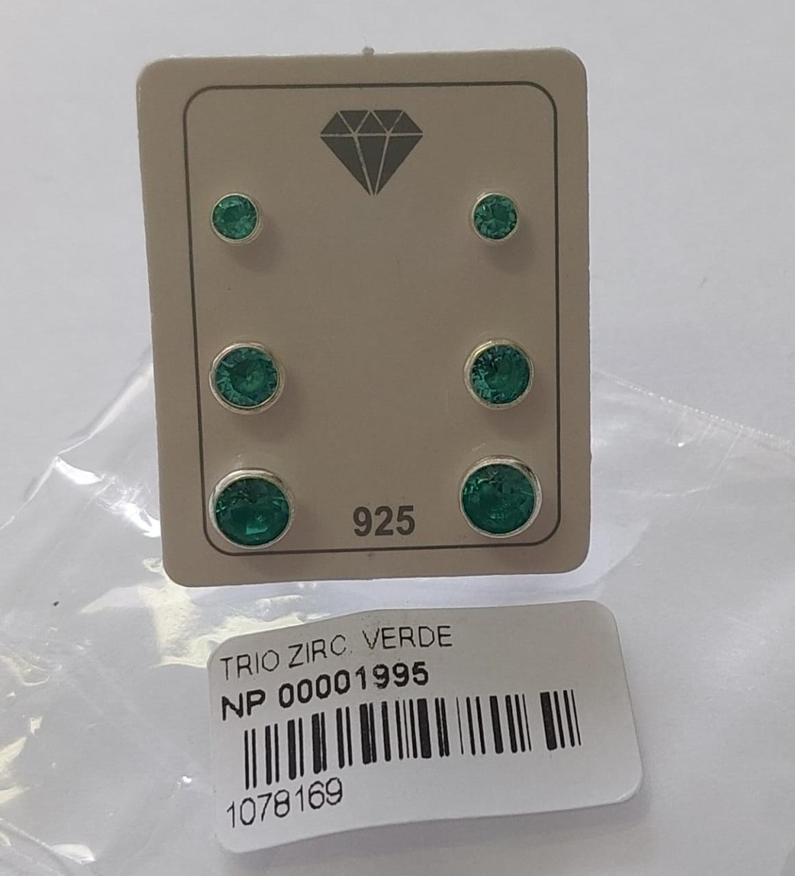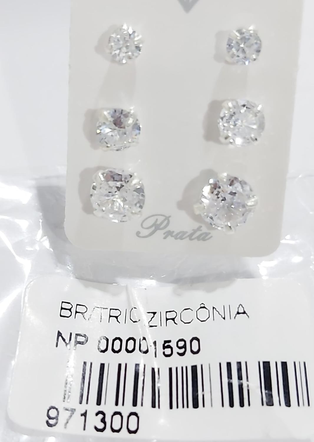 BRINCO PRATA TRIO ZIRCONIA REDONDO