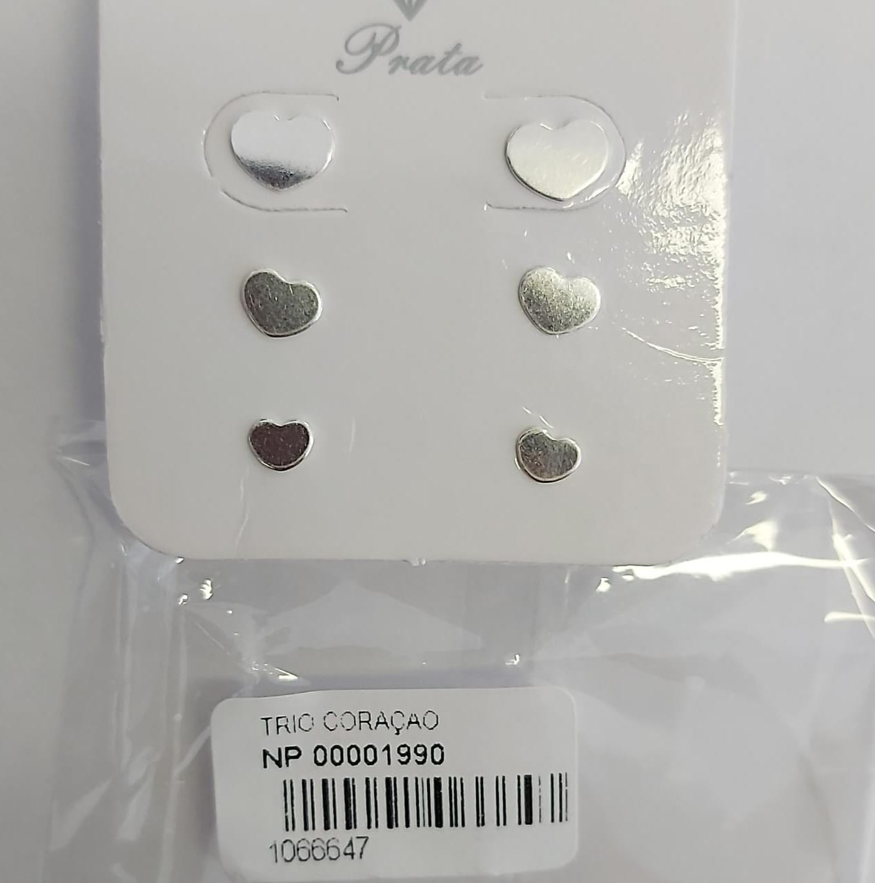BRINCO PRATA TRIO CORAÇÃO LISO