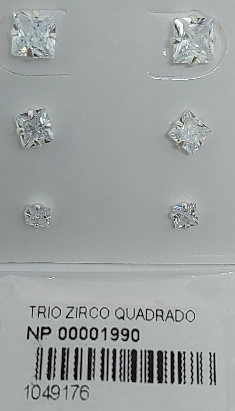 BRINCO PRATA TRIO QUADRADO ZIRCONIA