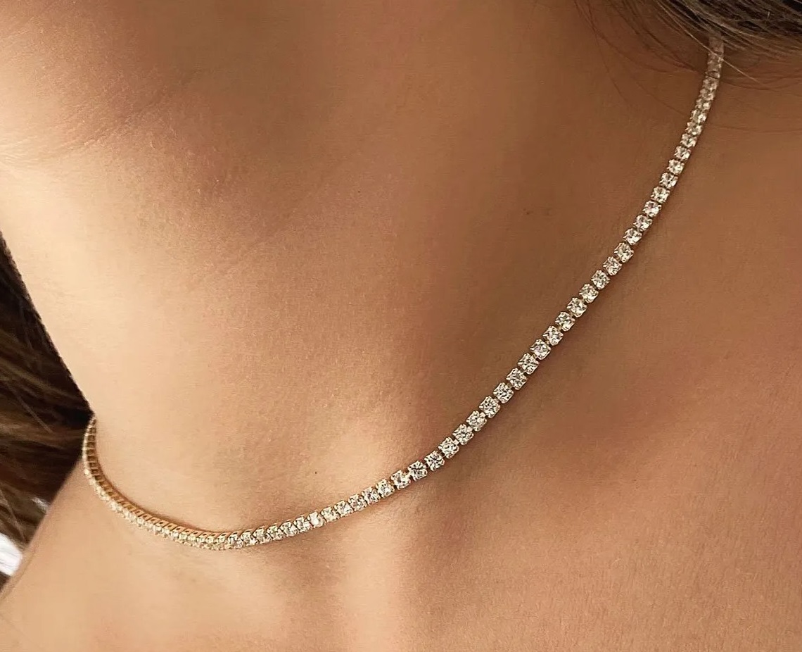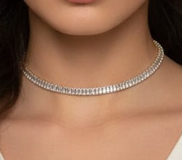 GARGANTILHA CHOKER ZIRCONIA BAGUETE COM ESTENSOR