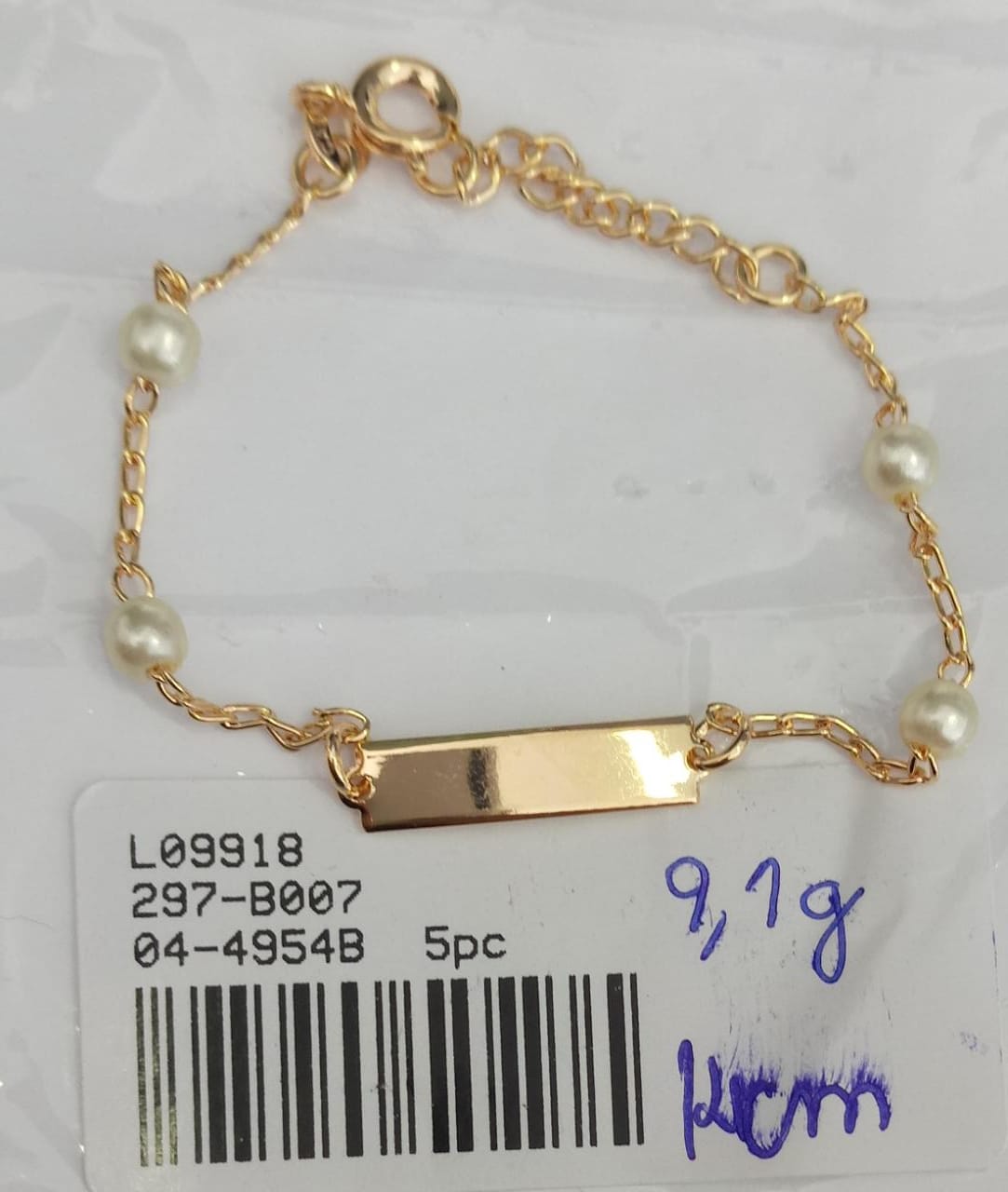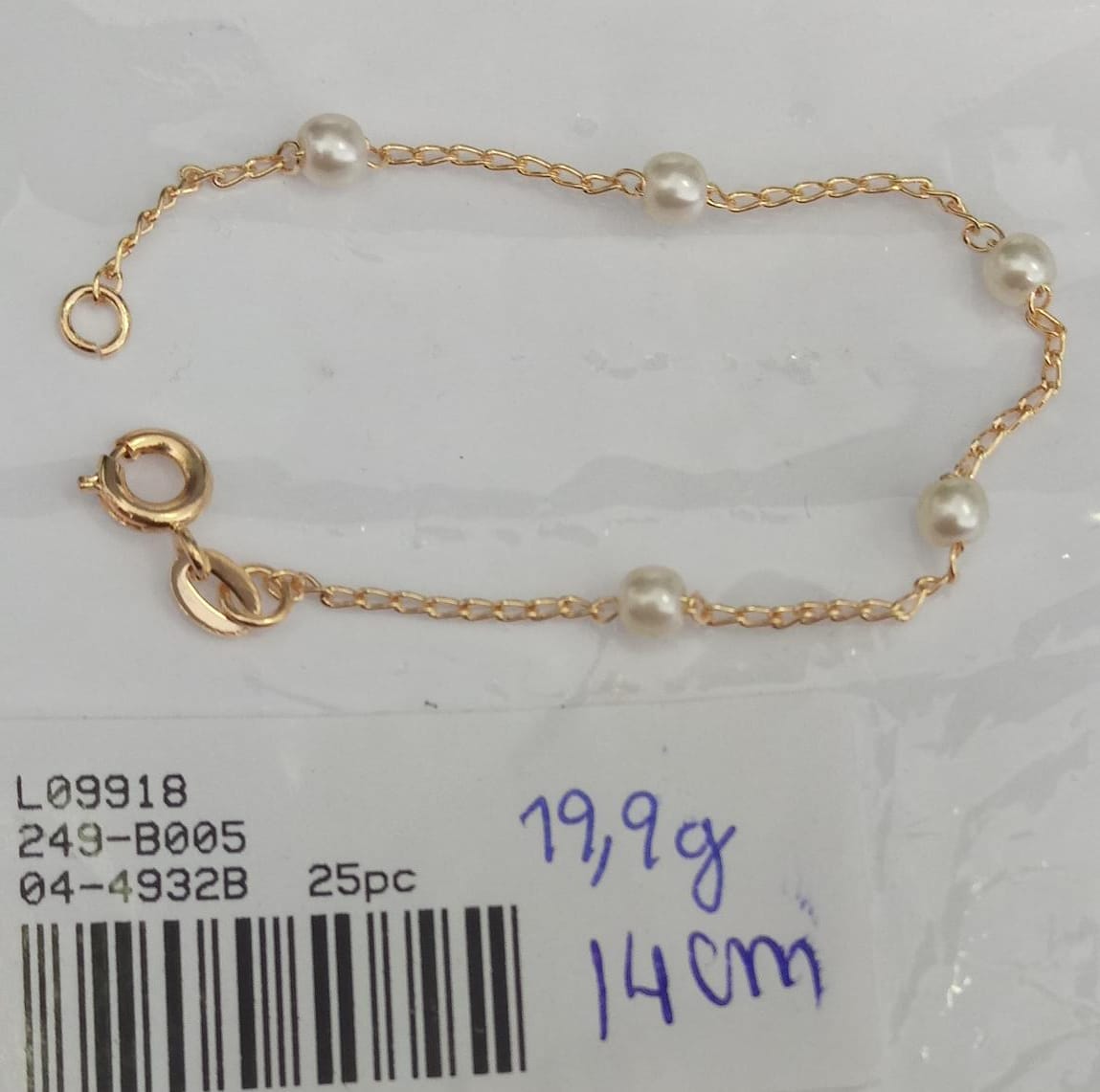 PULSEIRA INFANTIL PLAQUINHA COM PEROLA