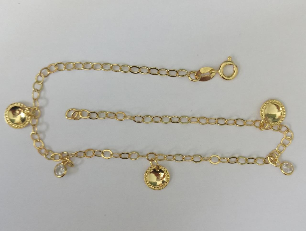 TORNOZELEIRA ELO PORTUGUES FINO COM PINGENTE SOL E PONTO