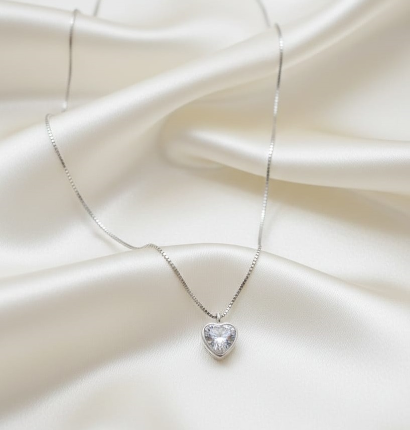 GARGANTILHA PRATA PONTO LUZ CORAÇÃO VENEZIANA