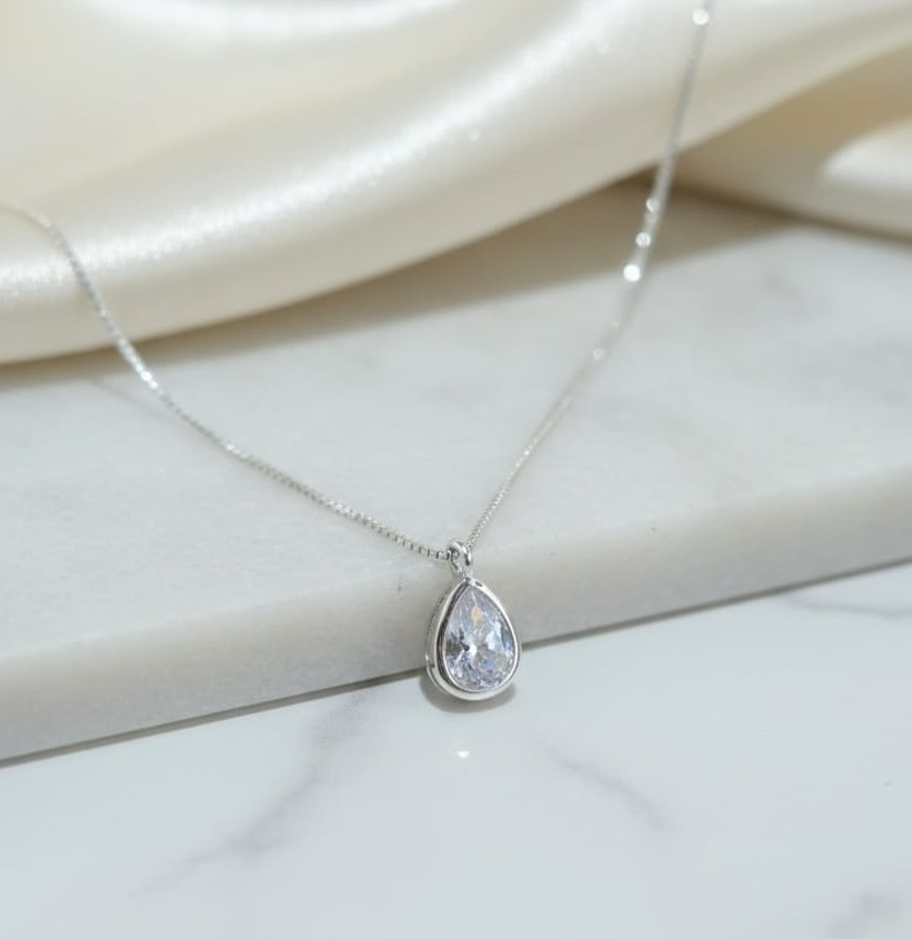 GARGANTILHA PRATA VENEZIANA PONTO DE LUZ ZIRC GOTA