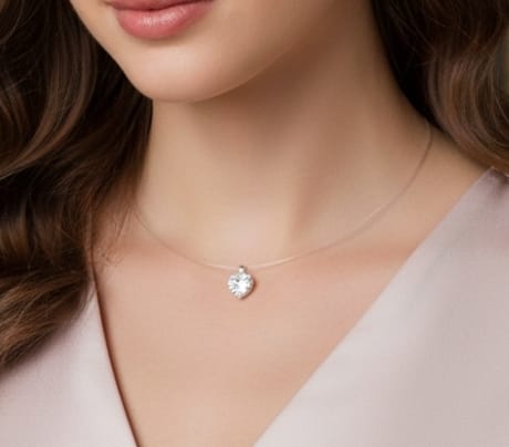 GARGANTILHA PRATA PONTO DE LUZ NYLON CORAÇÃO