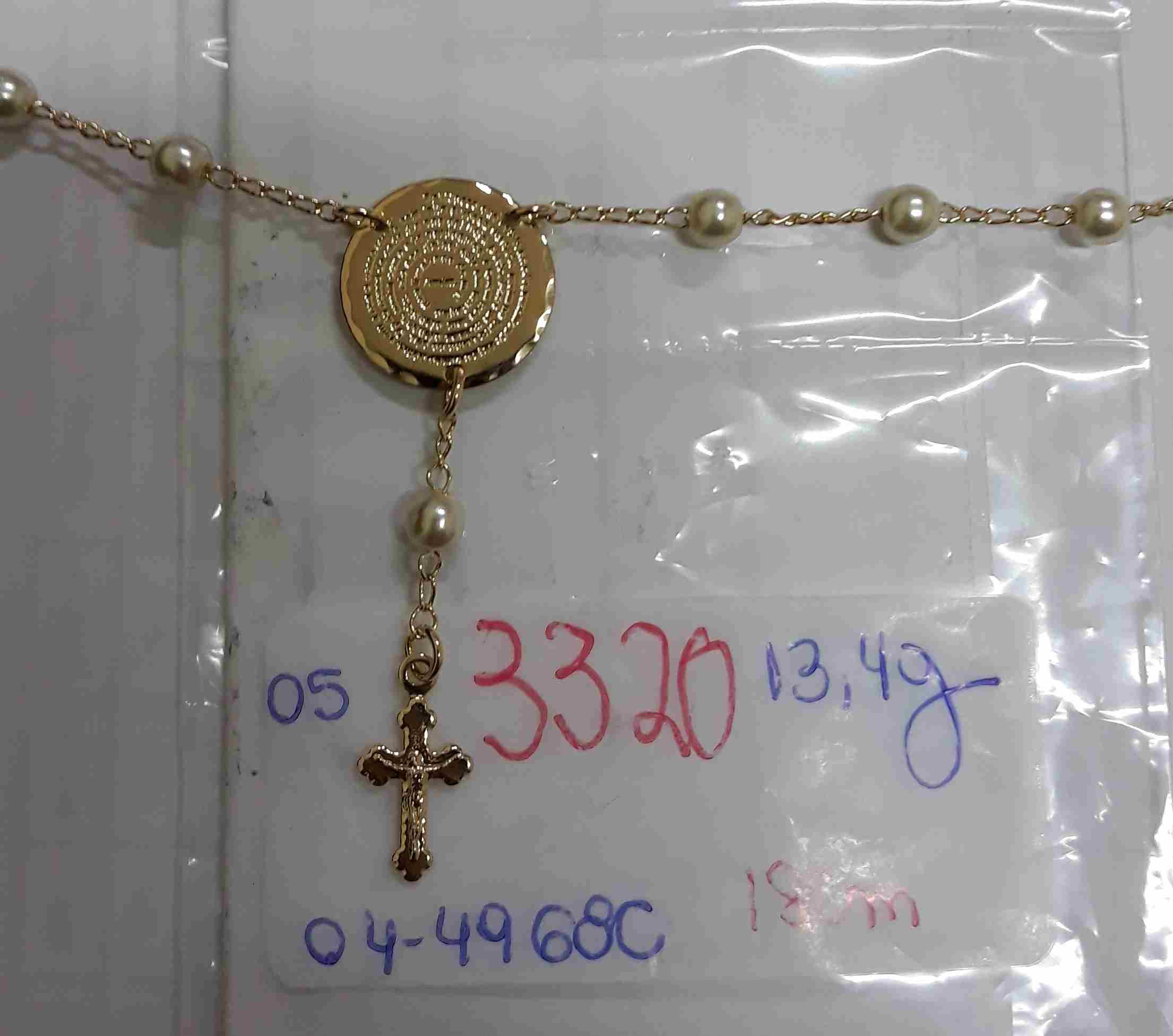 PULSEIRA TERÇO PEROLA C/ MEDALHA PAI NOSSO