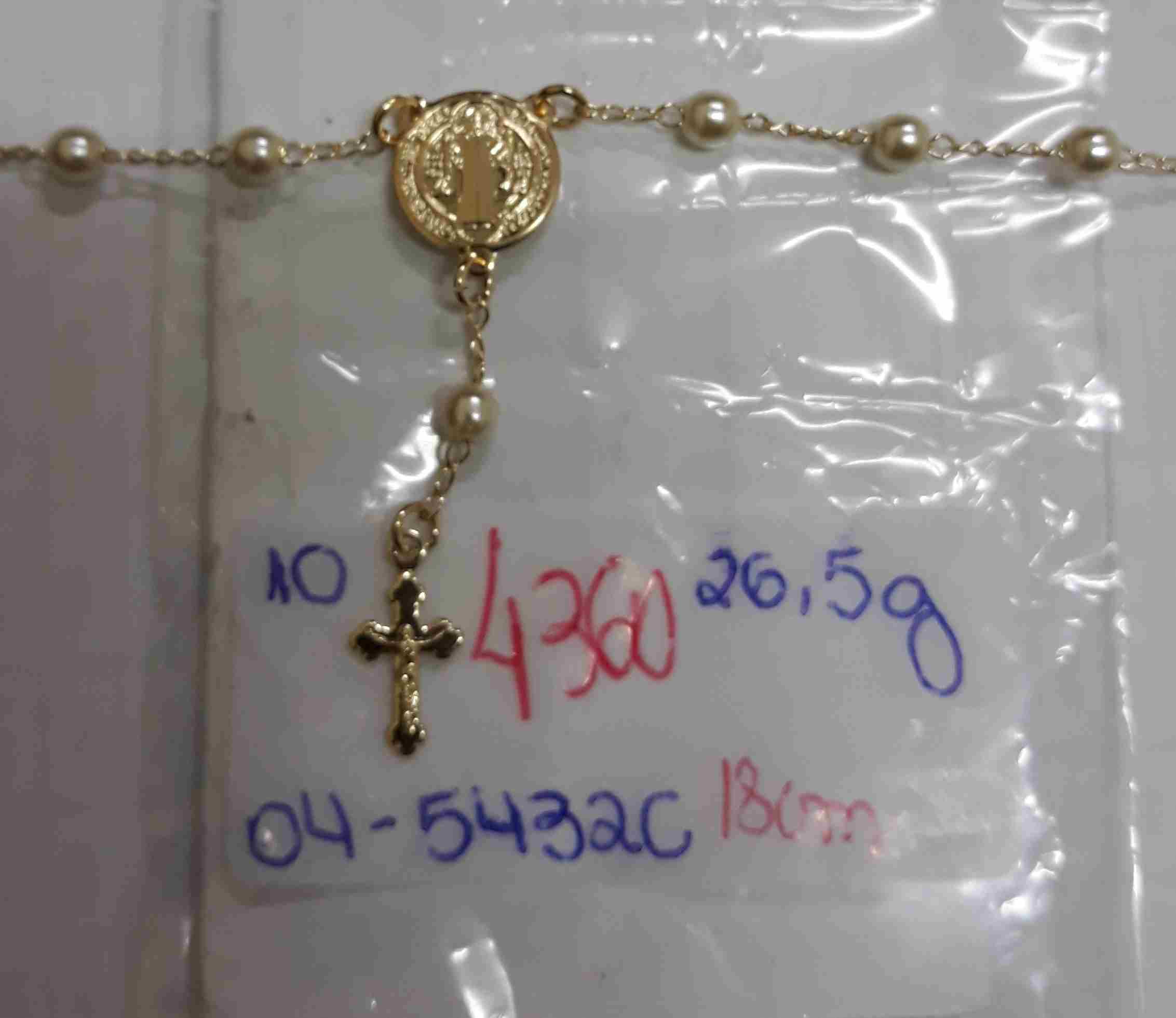 PULSEIRA TERÇO PEROLA C/ MEDALHA SÃO BENTO